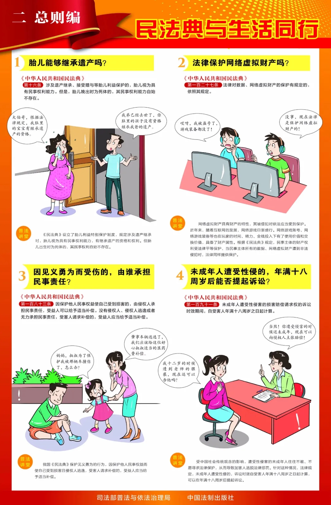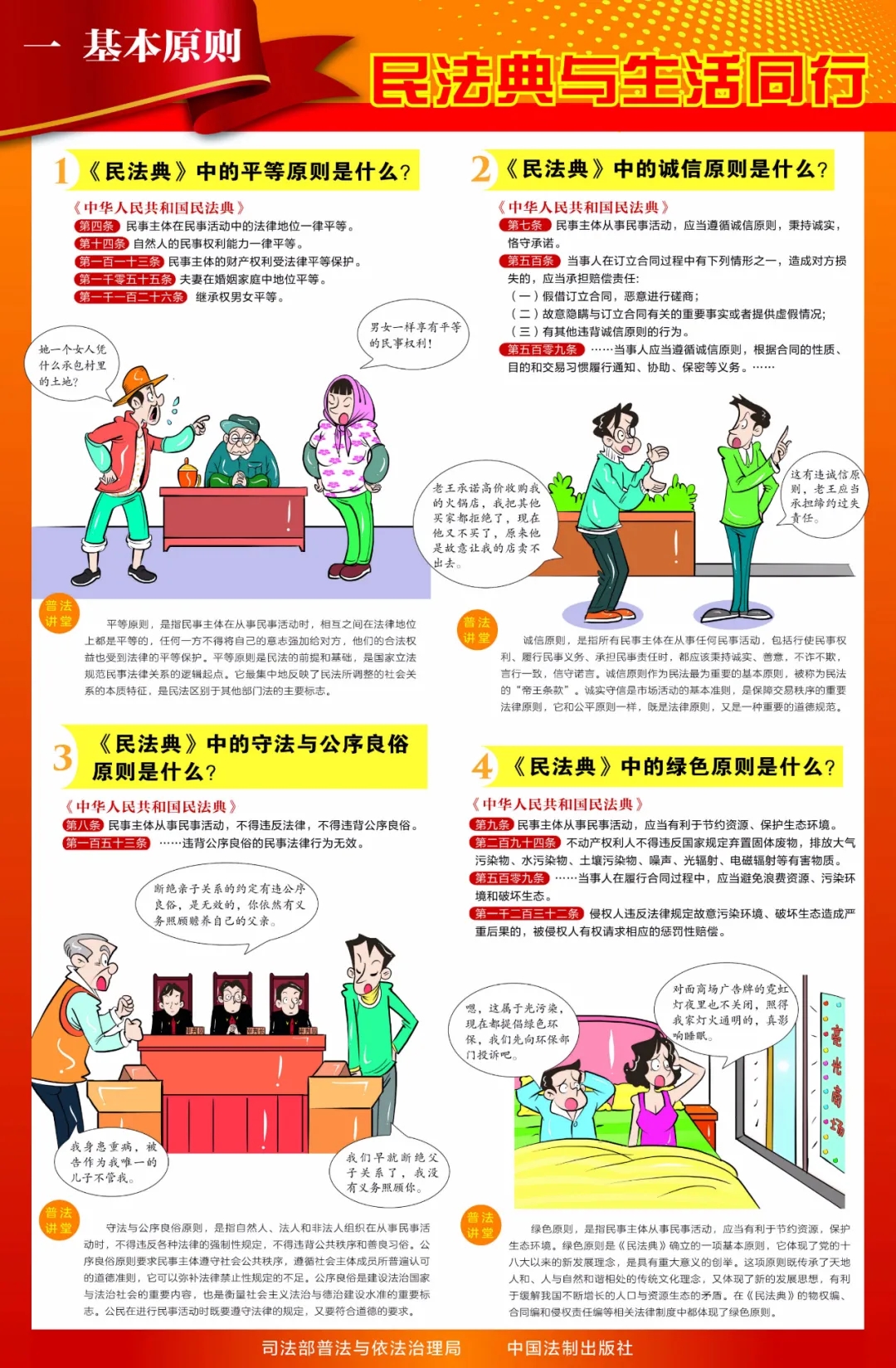 為深入貫徹落實習(xí)近平總書記關(guān)于廣泛開展民法典普法工作的重要指示,司法部普法與依法治理局會同中國法制出版社編輯了《民法典與生活同行》系列掛圖(一套9張),如下: