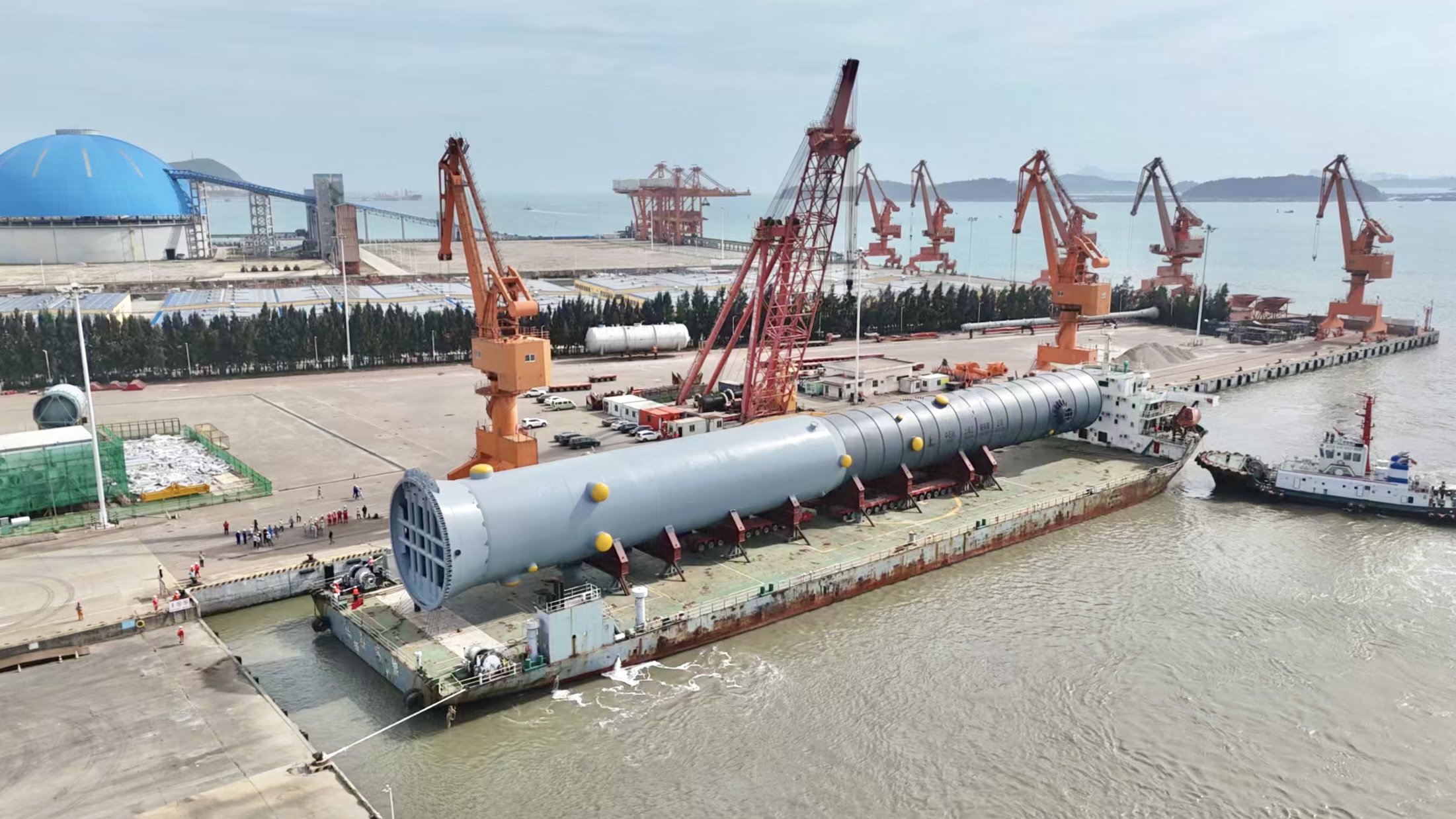 日前,全球最大的EO/EG(環(huán)氧乙烷/乙二醇)洗滌塔,經(jīng)由九龍江古雷碼頭到港卸船及運(yùn)輸,在古雷石化基地成功吊裝,標(biāo)志著中沙古雷乙烯項(xiàng)目正式進(jìn)入安裝高峰期。